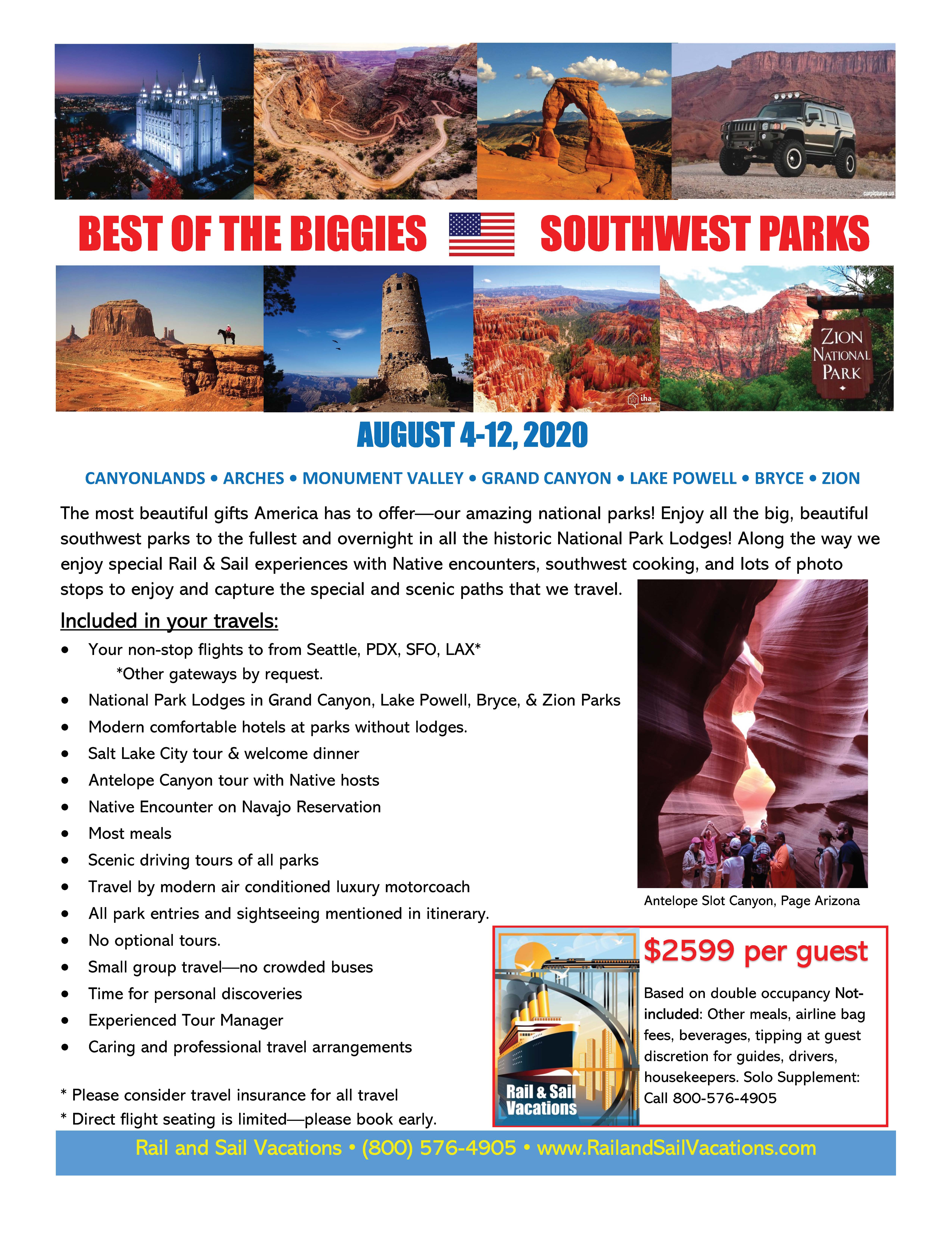 We have planned and led trips to most everywhere you would like to go first hand! We love to incorporate trains and cruises into our itineraries, but don't limit ourselves to "rail and sail" travel only. From US & Canada National Parks, to Asia, Europe, and Africa, we go EVERYWHERE! Some upcoming destinations including Backyard Railways of Germany, Elephant encounters in Thailand, New Year's Eve in Iceland, and a special Rail and Sail excursion to Alaska up the Pacific Coast!